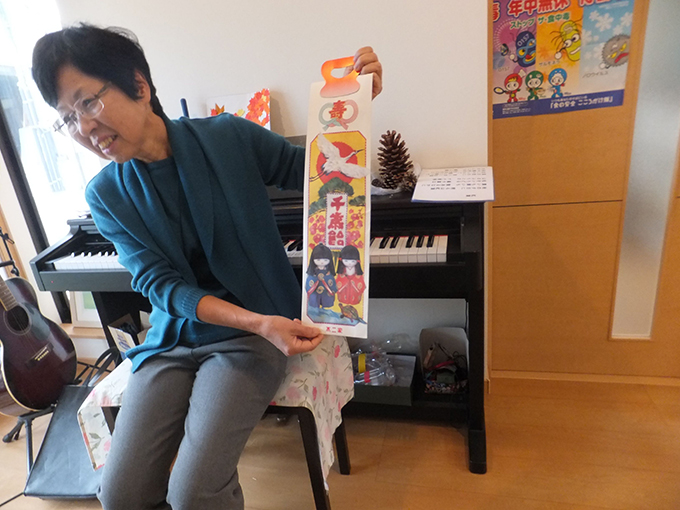 2015年11月14日 15日が七五三ということで七歳飴の袋を持ってきてくださいました。