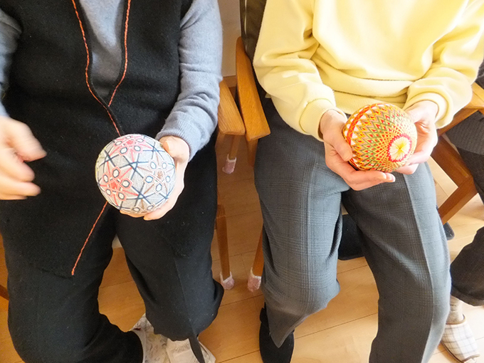 先生が猿が温泉に入っている写真を持ってきてくださり、そこに写っている猿の顔に人間と変わらんなーと皆で笑っていました。 かざり手毬も持ってきてくださり、細工に皆様驚嘆されていました。
