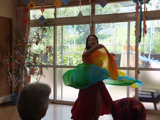 2016年7月5日 ニチイケアセンター八田荘様にお邪魔し、ボランティアの方のベリーダンスとフラダンスを鑑賞させていただきました。