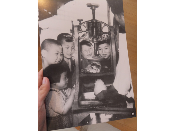 2012年7月14日 夏に食べたいおやつの話から入りました。アイスクリーム・すいか・かき氷など、これをつなげて「われは海の子」のかえ歌を即興で作り上げました。 また、昭和26年頃のかき氷の機械の写真を見せて頂きました。お国自慢も出て、各々故郷にちなんだ民謡・歌謡曲を歌いました。